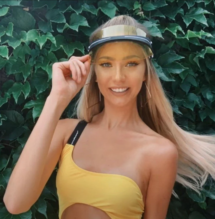 One of the 15 modeling photos the customer purchased is shown to the left of this text. The customer is using this photo and the others ones they purchased in their Amazon store and Instagram ads to promote one of their best-selling items — a sun visor.